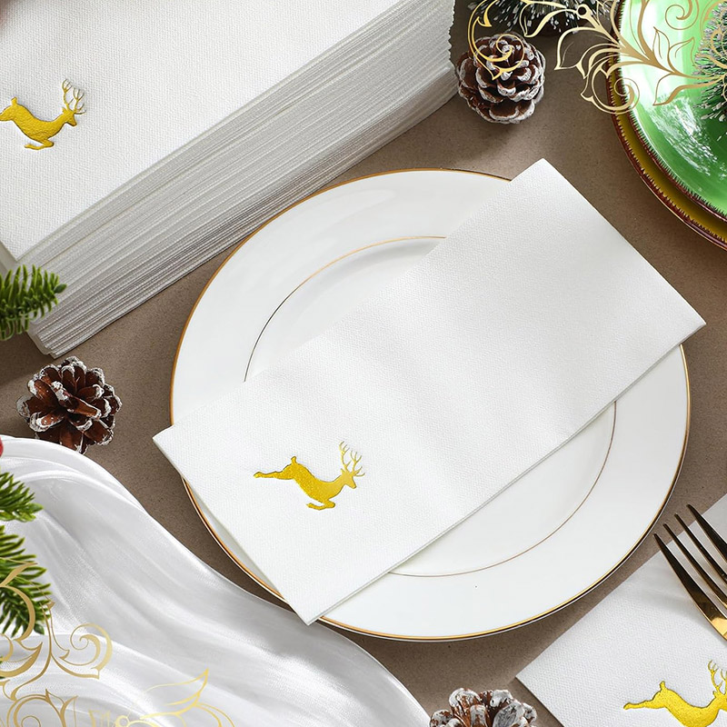 Traga uma elegância festiva para suas reuniões de férias com nossos guardanapos de papel de ar de 43x30 espessos, com um design de carimbo quente de árvore de Natal prateada (Modelo SJ1402). Esses guardanapos de papel de avião premium são a combinação perfeita de luxo e praticidade, oferecendo absorção superior, durabilidade e um toque de sofisticação. Ideal para celebrações casuais e formais, esses guardanapos elevam o ambiente de qualquer jantar de Natal, festa de férias ou banquete de inverno. 1. Material de avião premium: Feito com papel espesso de papel, esses guardanapos são macios ao toque, altamente absorventes e duráveis, oferecendo uma qualidade muito mais alta que os guardanapos de papel tradicionais. 2. Stampo quente de prata elegante: O design da árvore de Natal prateado é elegantemente caro para um visual brilhante e sofisticado que os torna perfeitos para festas de Natal, celebrações de inverno e jantares de férias. 3. Tamanho grande: a 43x30 cm, esses guardanapos são grandes o suficiente para servir os propósitos decorativos e funcionais, tornando -os perfeitos para configurações de mesa, buffets e recepções de casamento. 4. Eco-amigável: Feito de materiais recicláveis, esses guardanapos ecológicos são biodegradáveis, fornecendo uma escolha sustentável para quem procura reduzir seu impacto ambiental durante a estação festiva. 5. Uso versátil: esses guardanapos são perfeitos para qualquer ocasião especial, desde jantares de véspera de Natal, celebrações de Ano Novo, brunches de férias, eventos de férias corporativas e casamentos de inverno. 6. Ótima ideia de presente: embalado lindamente, esses guardanapos também são um excelente presente para quem gosta de configurações de mesa de férias luxuosas ou decoração festiva. Aprimore sua experiência de férias com os guardanapos de papel de melhor qualidade, projetados para funcionalidade e estilo. Esteja você hospedando uma reunião íntima ou uma grande celebração, nossos guardanapos espetos de ar é uma adição obrigatória à sua coleção de utensílios de mesa de Natal.